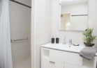 • Une douche à l’italienne avec barre de maintien et siège de douche